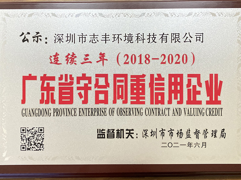 志豐環境是客戶的信賴選擇,被深圳是市場監督管理局、深圳市私營企業協會授予”廣東省守合同重新用企業“和”紅旗文明誠信企業“。
